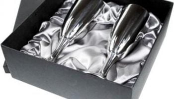 Pair of celebration Flutes Made of Pewter, made in Sheffield.England.UK Polished with makers marks on one side near the top...