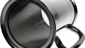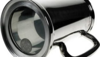 Boxed item Shiny finish inside & out Makers Mark under rim by handle Genuine shilling sandwiched in the double glass...